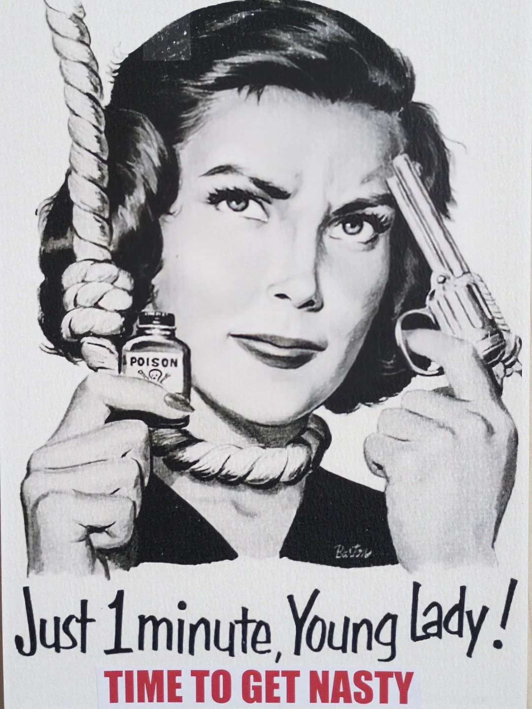 Each print works individually, or as part of a larger combination. The themes revolve around authoritarianism, inequality, misogyny, feminist resistance, abuse, subjugation and LGBTQ+ representation. The message is that women are not going back. Back to the 1950's, 1850's or the 1650's and for men to stop being what we need protection from.