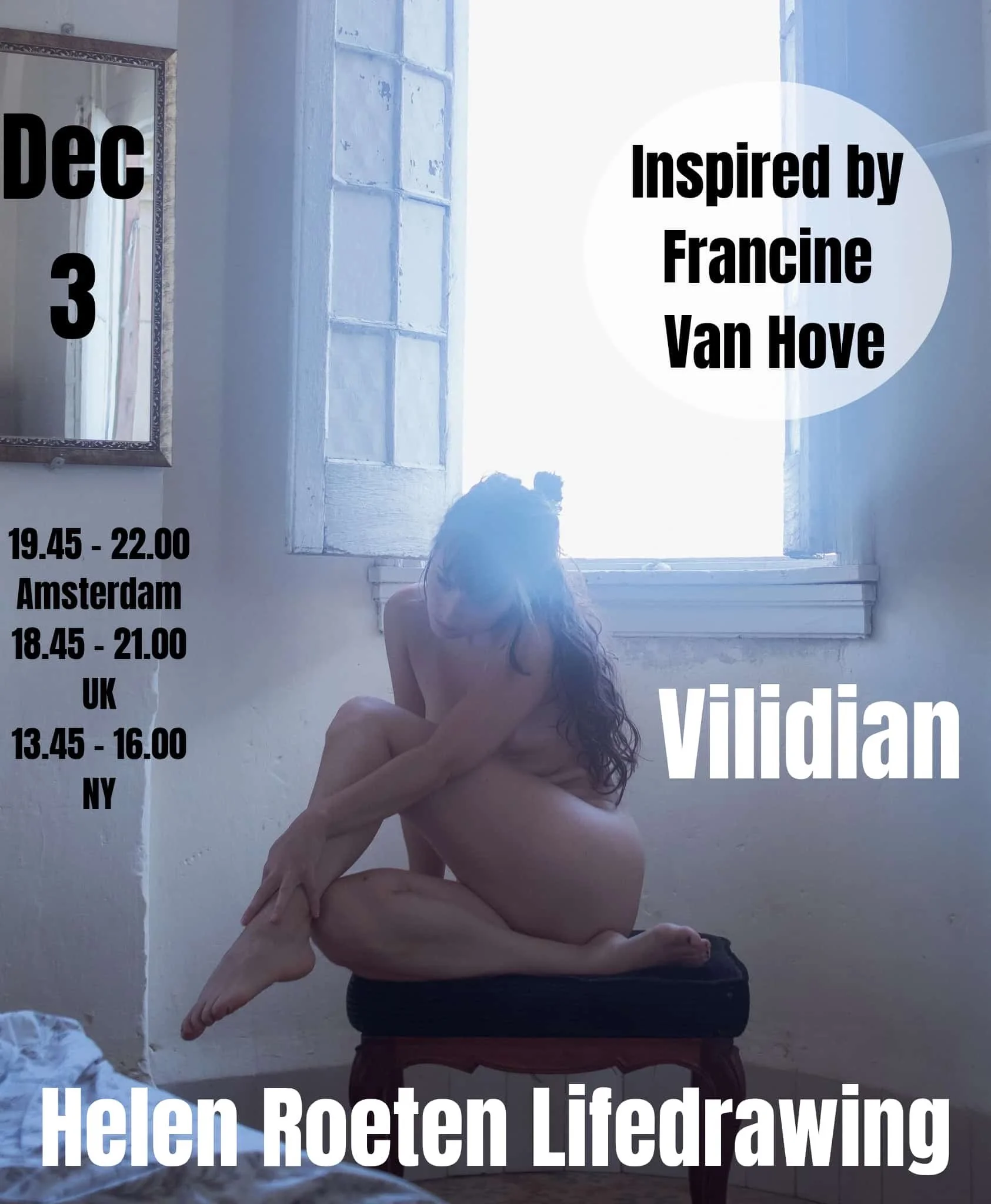 Such a joy to finally meet in person. Vilidian will be staying in my home in Amsterdam. And we choose the art of Francine Van Hove as inspiration for the poses.